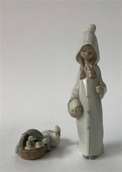 Manifattura di Lladro, lotto composto da due sculture in porcellana raffiguranti bambina e anatre (difetti e restauri)