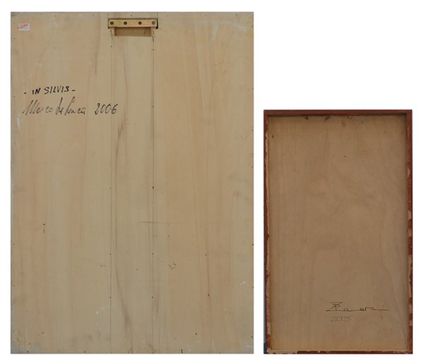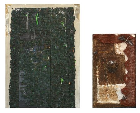 Lotto composto da due opere moderne di artisti diversi: una tecnica mista con tessere di mosaico (cm 70x50), firmata, titolata e datata 2006 al retro e un assemblage su tavola (cm 50x30) firmato e datato 2005 al retro