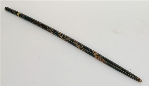 Bastone animato di manifattura orientale, probabilmente fatto per un europeo. Impugnatura e canna recanti varie incisioni a motivi vegetali. Lama da una daghetta ad un filo. Fine secolo XIX (l. cm 90)