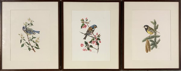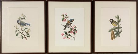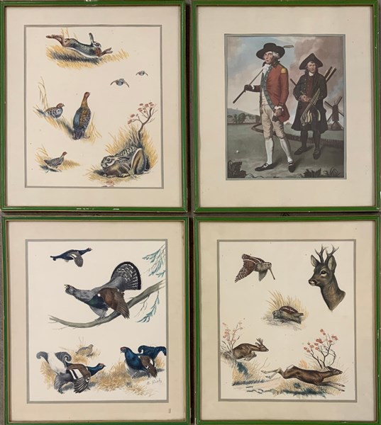 Lotto di sei stampe a soggetto faunistico e una raffigurate giocatori di golf,