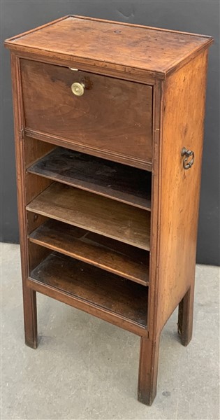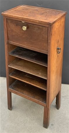 Piccola libreria ad un'anta ribaltabile e vani a giorno con montanti scanalati (cm 40x87x26) (difetti)