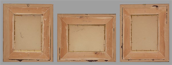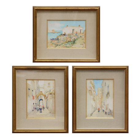 "Scorci" gruppo di tre acquarelli su cartoncino (cm 17x23) firmati, in cornici