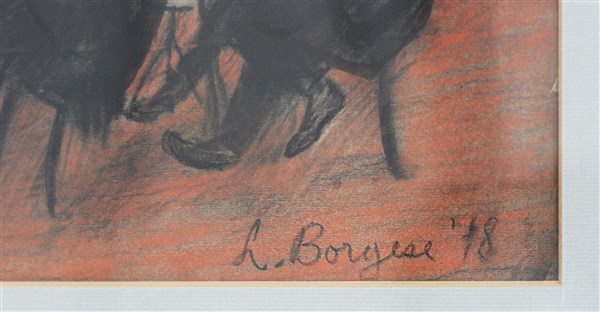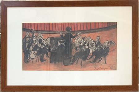 Leonardo Borgese "Orchestra" 1978 pastelli su carta cm 25x48 firmato e datato in