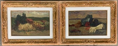due dipinti ad olio su tela