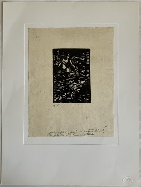 Arturo Checchi "Senza titolo" 1916 xilografia stampata su carta riso foglio cm 2