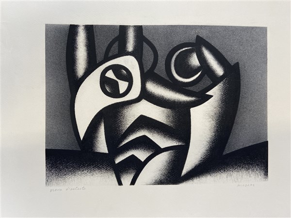 Lotto composto da otto litografie di autori, misure e soggetti diversi, tra cui Soffiantino, Morlotti, Bonfante e Miodrag unite ad una cartella editoriale scompleta "Le regioni del fuoco"
