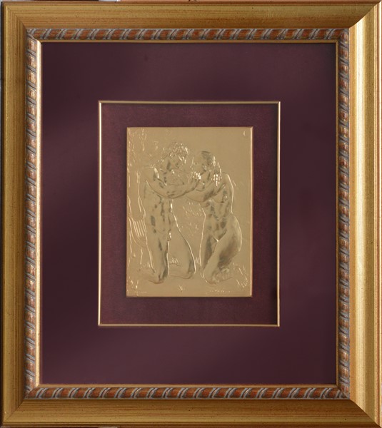 Francesco Messina "Adamo ed Eva" bassorilievo-multiplo in bronzo dorato cm 20,5