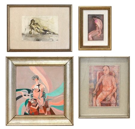 Lotto composto da quattro dipinti raffiguranti nudi, di autori, tecniche e misure diverse