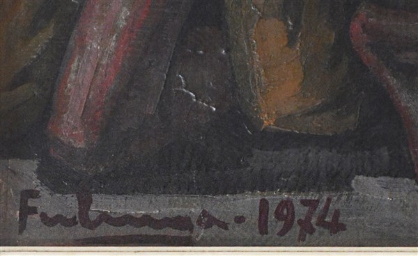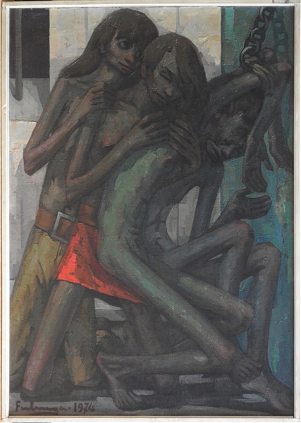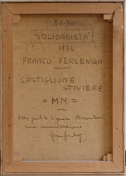 Franco Ferlenga "Solidarietà" 1974 olio su tela cm 70x50 firmato e datato in bas