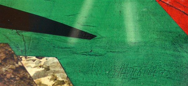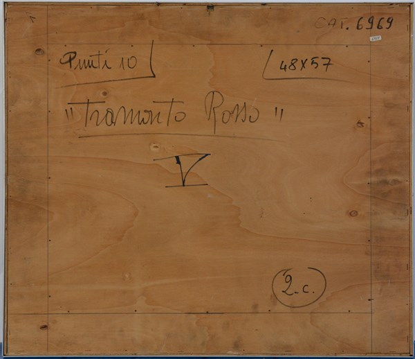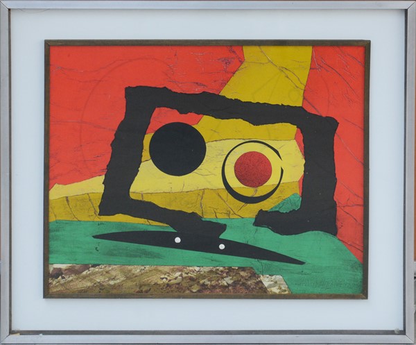 Firma indecifrata "Tramonto rosso" 1979 tecnica mista e collage su tavola cm 48x