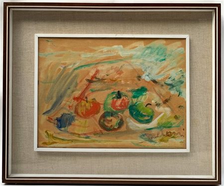 Gino Meloni "Quattro mele" tecnica mista su carta applicata su tela cm 32x44 fi
