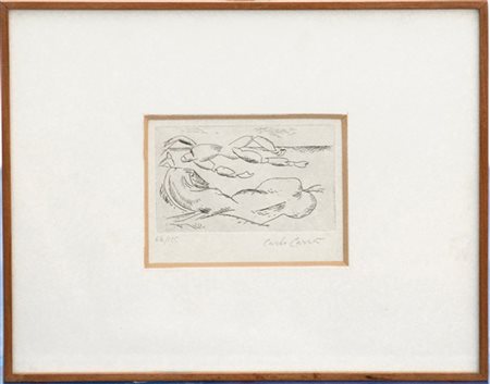Carlo Carrà "Uomo e cavallo sulla spiaggia" 1924acquafortelastra cm 6,5x11fir