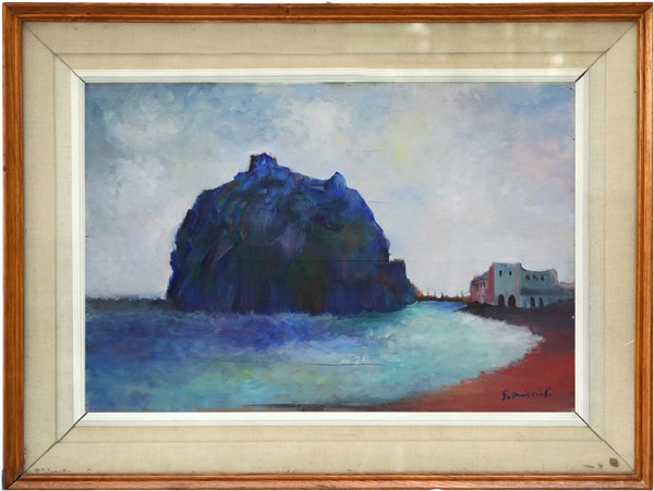 Giovanni Omiccioli "Castello Aragonese" olio su tavola cm 42x61 firmato in bass