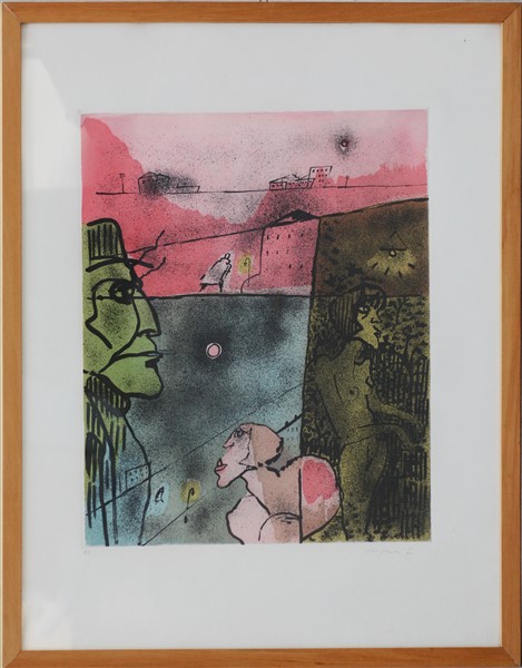 Franco Rognoni "Senza titolo" acquaforte e acquatinta a colori foglio cm 84x68