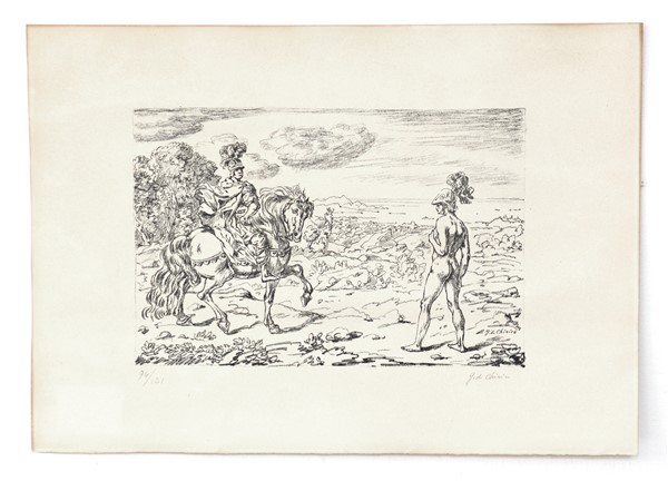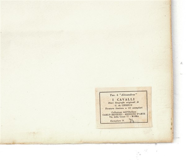 Giorgio de Chirico "Alexandros" 1948 litografia stampata su carta con filigrana