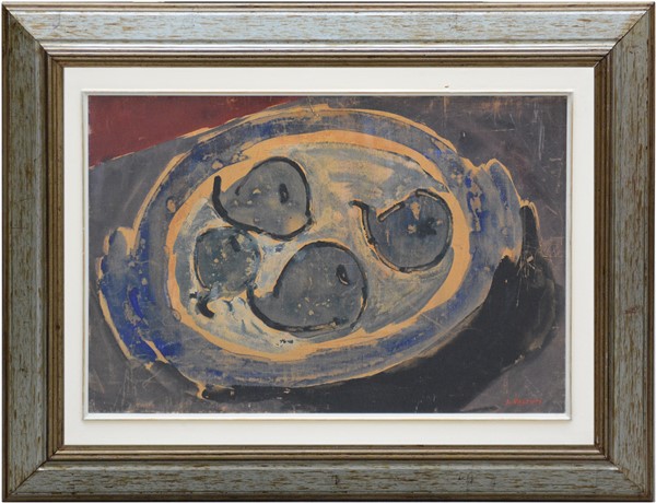 Italo Valenti "Natura morta con quattro pere" 1954 olio su carta intelata cm 37x