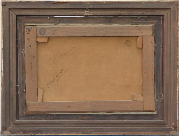 firmato in basso a destra; scritte a retro. In cornice (difetti)