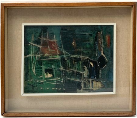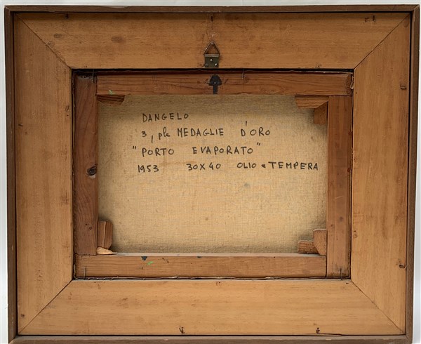 Sergio Dangelo "Porto evaporato" 1953 olio e tempera su tela cm 30x40 titolato,
