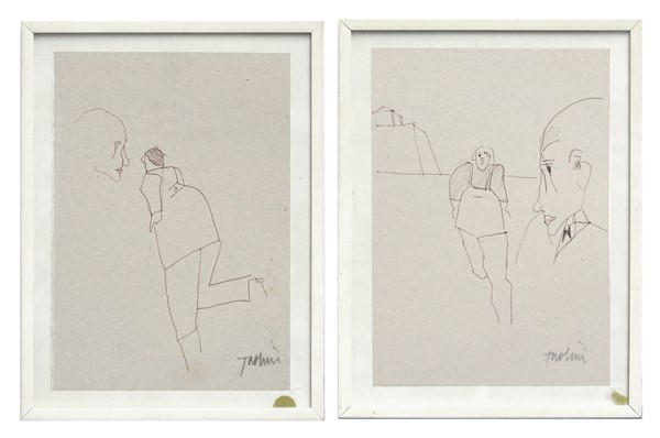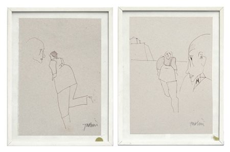 Emilio Tadini Coppia di disegni a biro su carta cm 21x15 firmati in basso a dest