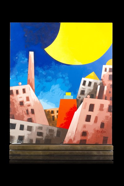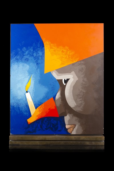 "Overseas" in 1995 multiple, screen printing on metal (front and back) of metal. Signed and numbered. Edition of 100 pieces (25x30 cm)