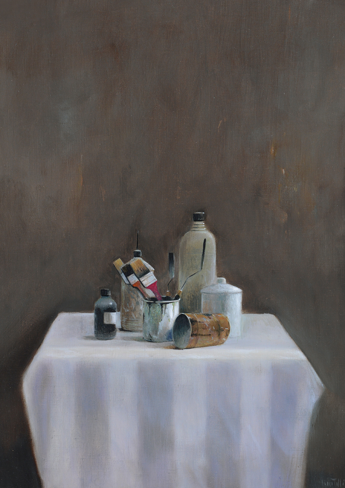 BENIAMINO CICCOTELLI Tollo 1937 Barattoli e pennelli olio su tela cm. 70x50,...