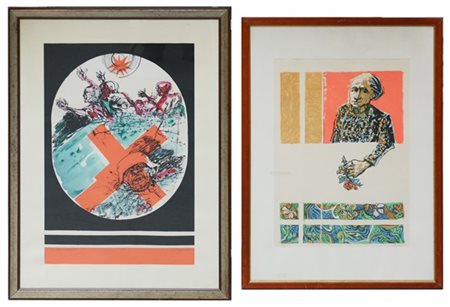 lotto composto da due litografie a colori di soggetti diversi, entrambe firmate a matita, una numerata 36/50, l'altra esemplare unico