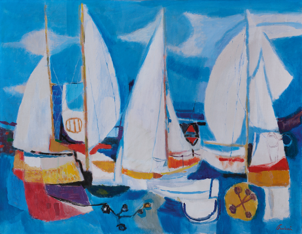ENRICO PAULUCCI Genova 03/10/1901 - Torino 22/08/1999 Porto a Santa Marcherita, 1973 olio su tela cm. 90x116, firma in basso a destra, titolo, firma e anno al retro, opera registrata presso l'Archivio Paulucci come da dichiarazione su foto.