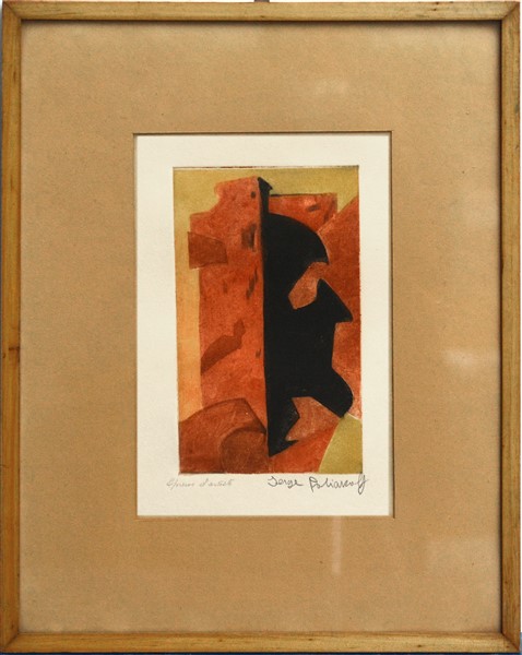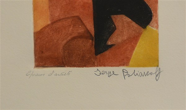 Serge Poliakoff "Composition orange, rouge et noire" 1957 acquaforte a colori (l