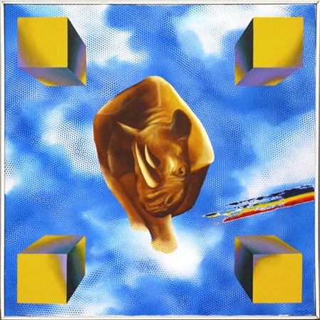Drago "Rinoceronte centrale" 1972 acrilico su tela cm 100x100 firmato e datato i