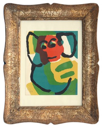 Karel Appel "Tête" 1975 litografia a colori cm 30x25 firmato e datato 75 in bass