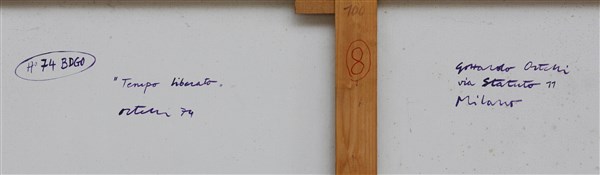 Gottardo Ortelli "Tempo liberato" 1974 acrilico su tela cm 150x150 firmato, data