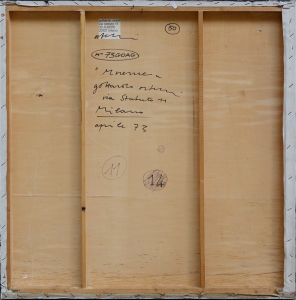 Gottardo Ortelli "Mneme" 1973 acrilico su tela applicata su tavola cm 95x95 firm