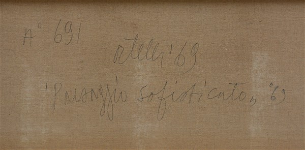 Gottardo Ortelli "Paesaggio sofisticato 1969" acrilico su tela cm 130x120 firma
