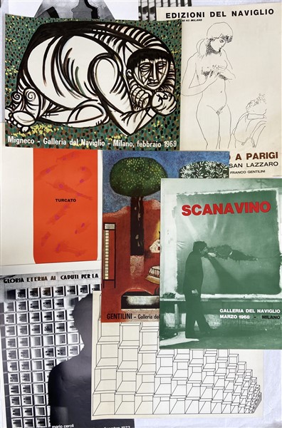 Lotto composto da 10 manifesti espositivi della Galleria del Naviglio, Milano,