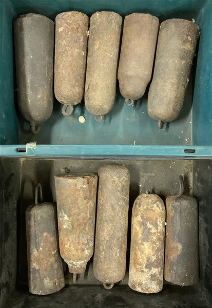 Lotto di due scatole contenenti pesi da orologi Morbier (difetti)