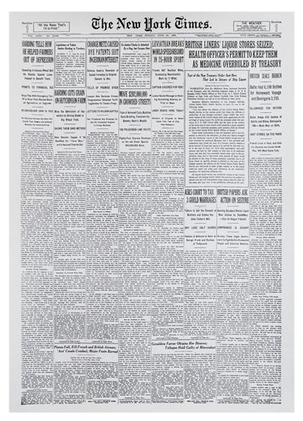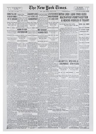 The New Yorks Times , Prima pagina ristampata, senza cornice 18'' x 24'' pollic