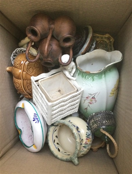 Cartone contenente numerosi oggetti in ceramica (difetti)