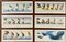 Gruppo di sei stampe a colori di soggetti differenti (cm 25x63), in cornici (lievi difetti)