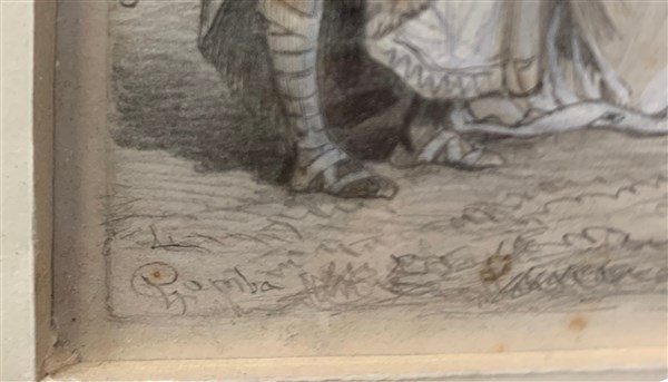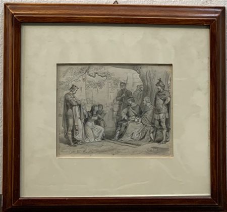 "Scena storica" matita e biacca su carta (cm 13x16) Firmato in basso a sinistra. In cornice (lievi difetti)