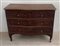 Cassettone lastronato con piano a fronte mosso a tre cassetti filettati. Grembi