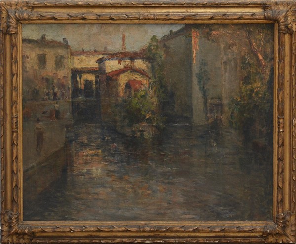 Arpini Carlo (Ancona 1866 - Monza 1922) -"Naviglio" olio su tela (cm 96x121) Firmato in basso a destra. In cornice (difetti)