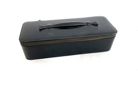 Necessaire portagioielli in pelle nera con chiusura a cerniera