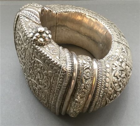 Grande cavigliera omanita Nizwa in argento sbalzato a mano