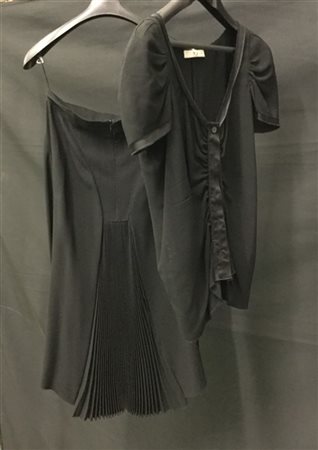 Completo, camicetta a maniche corte e gonna longuette, in crêpe nero (tg. 42) (lievi difetti)