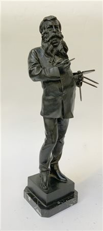 "Ritratto del pittore Ernest Louis Messonier" scultura in metallo brunito poggiante su base in marmo (h tot cm 59) Reca iscrizione postuma Fond. V. Gemito, Napoli 1910