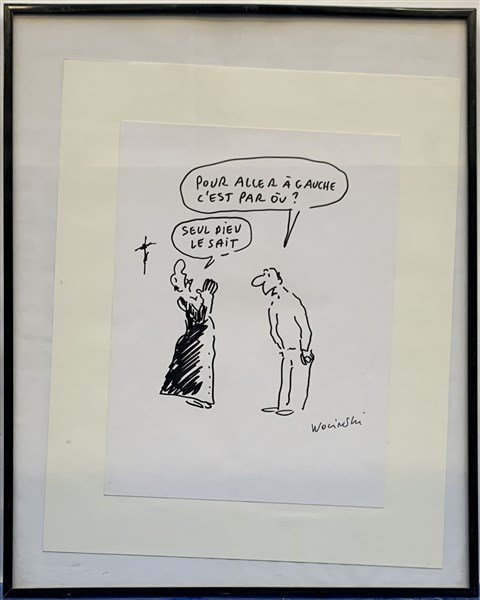 Georges Wolinski Due vignette satiriche, pennarello e acquerello su carta, di cu