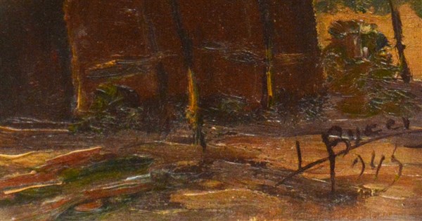 Bucci "Capanne" 1945, olio su cartone telato (cm 25x35) firmato e datato in bass