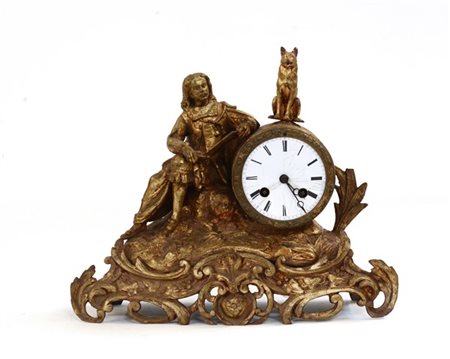 ANONIMO Pendola in metallo dorato. Francia fine XIX Secolo. Quadrante in smalt