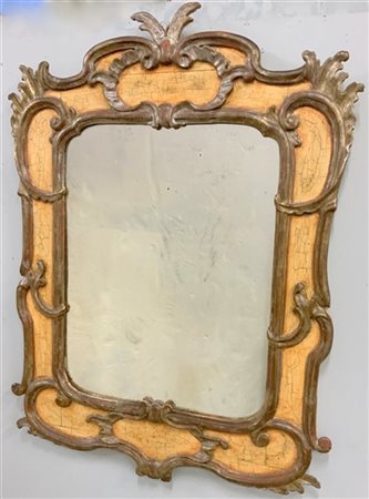 Specchiera di forma mossa in legno intagliato, laccato e argentato a volute fogliate (cm 125x92) (difetti e restauri)