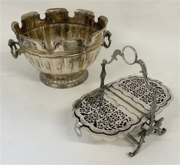Lotto composto da una biscottiera e un rinfresca bottiglie in metallo argentato di diversa fattura
